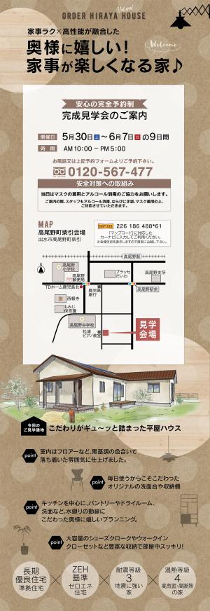 6/24(土)25(日)の2日間、出水市高尾野町会場で、オーダーメイドだから叶った自分スタイルの平屋の完成見学会を開催致します。